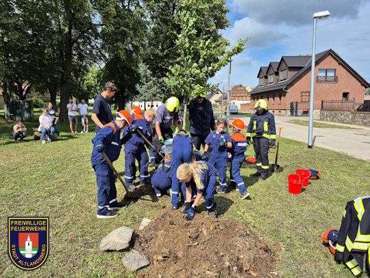 Am 25.07. ging die Löschgruppe Buchholz ihrer Nominierung aus Schwarze Pumpe nach und nahm an der Baumpflanz-Challenge teil, die aktuell in ganz Deutschland die Runde macht. Passend zum Ortsnamen stand schnell fest, dass es eine Buche, genauer gesagt eine Rotbuche werden sollte. Gesagt, getan: Der Baum war besorgt, die Materialien zusammengesucht und ein Termin festgelegt. In Zusammenarbeit zwischen der aktiven Abteilung und der Jugendgruppe aus Buchholz konnte der Baum schnell und problemlos gepflanzt werden und verschönert den Dorfanger nun noch mehr. Beschriftet mit einem Schild, kann er jetzt von jedem Passanten erkannt und bewundert werden. Vielen Dank an Aqua Cut für dieses tolle Schild!